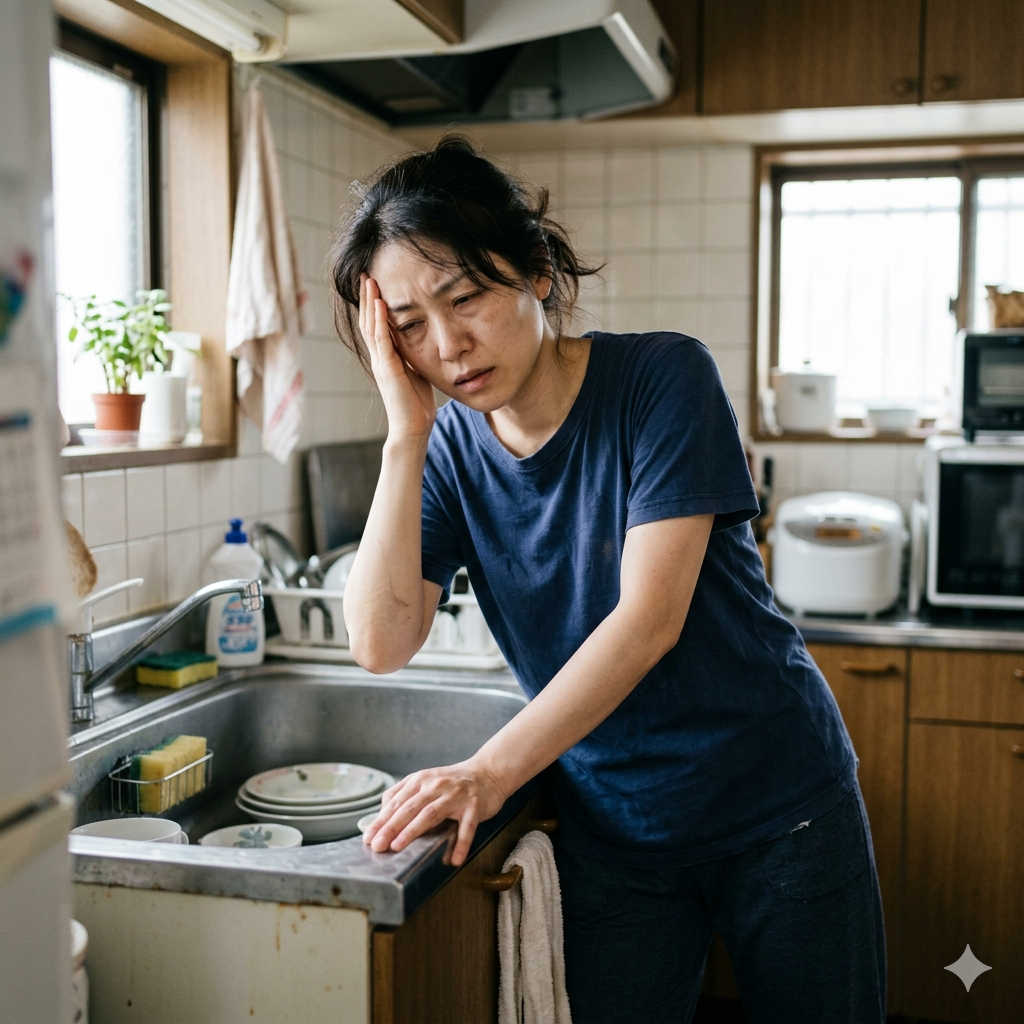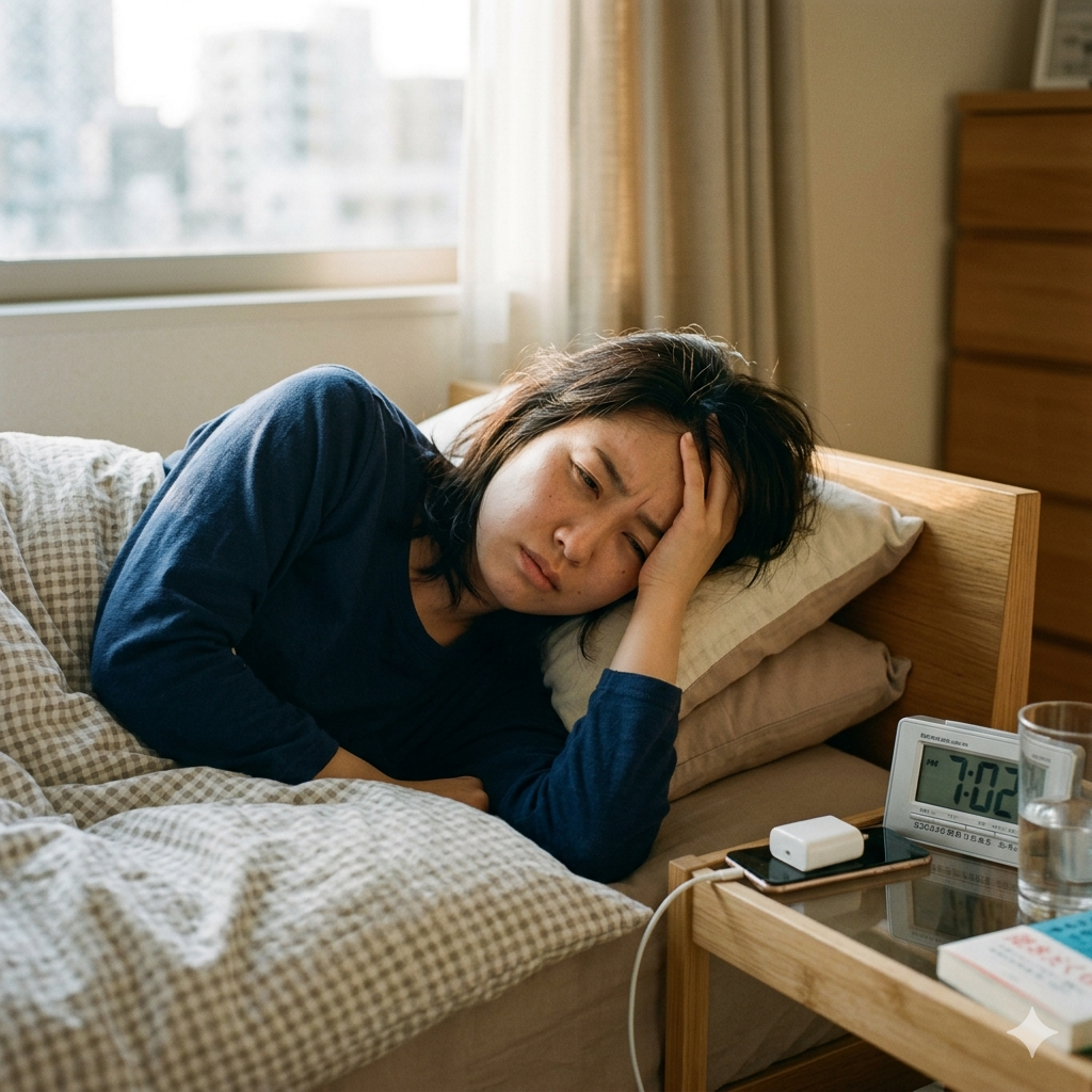 首のカーブが失われ、頭の重さが直接筋肉へ。後頭部の神経や血管が圧迫され、休息をとっても抜けない「重だるい頭痛」や「目の奥の痛み」が常態化します。